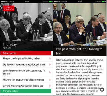 創刊が1840年代、つまり170年強の歴史を誇る英国の週刊新聞 The Economist の動きが活発です(Economist のスタッフ諸氏は、自らを「Newspaper」呼ぶのですが)。同誌の歴史上初の女性編集長が2014年末就任、また、積極的な印刷およびデジタルの購読制を推進する中、日刊ニュースアプリ「Espresso」をやはり昨年同時期に立ち上げるなどです。