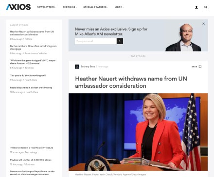 Axios とはどのようなものか、その華々しい成果については、津山恵子氏「無名メディアがトランプスクープ連発、超新興メディア Axios の実力」に依るのがいいでしょう。