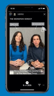 ストーリーズは、スマートフォンの画面に特化し、写真や動画、音声、そしてテキストを重ね合わせて表示する新しい表現の形式だ。利用者は、スマートフォンをタテに持ったまま、自分の友人やあこがれのセレブたちが投稿したストーリーズ作品をタップ(選択)すれば、あとは自動再生が続く。それぞれは短尺でも、次々に提示される投稿に没入できる。投稿は、24時間後には消滅してしまう。一回性や刹那性を後押しする仕組みでもある。